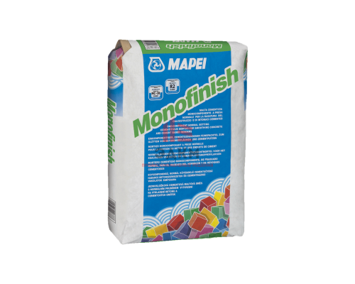 Mapei Monofinish - безусадочная быстротвердеющая смесь тиксотропного типа, предназначенная для выравнивания и чистовой отделки бетонных поверхностей. Максимальная фракция заполнителя 0,4 мм. Толщина нанесения от 1 до 3 мм. При смешивании с водой образует пластичный раствор, легко наносимый на вертикальные и потолочные поверхности.